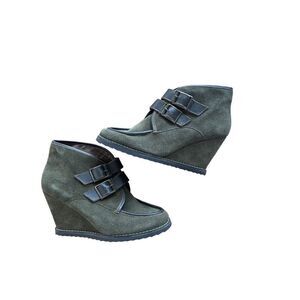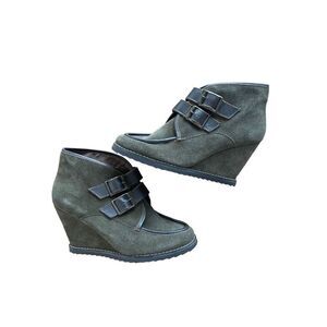 Charles David Womens Olive Green Suede Ankle Boots Wedge Size 8.5