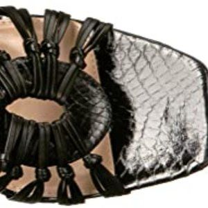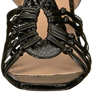 Step into sophistication with these stunning black leather dress heels by Charles David. Featuring an elegant open-toe design and strappy upper, these heels are perfect for elevating your look at any formal or evening event.