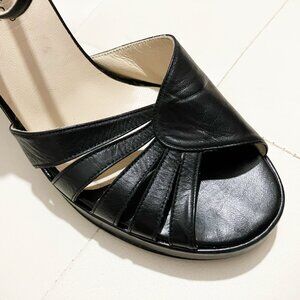 Charles David by Nathalie M Leather Black Strap Sandal Block Heels | Size 9B