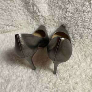 Charles David leather metallic gray slip on heels size 11 pointed toe Pre owned in good used condition . Small peelings on the inner side and a scratch around the toe area on the left shoe.see all pictures any questions please message.