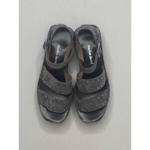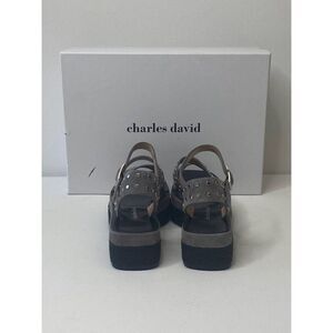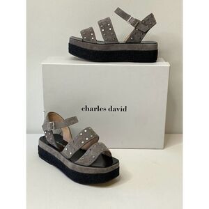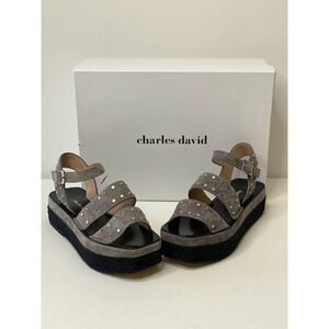 Charles David $219 Madeira Espadrille Platform Sandals 5.5 Black Gray Women's