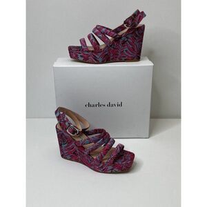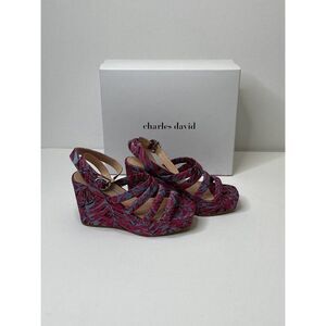 Charles David Judy Wedge Platform Sandals 8M Fuchsia Women's Adjustable NEW
