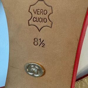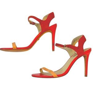 Charles David Strappy Colorblock Heels Stiletto in Red & Peach Leather 8.5