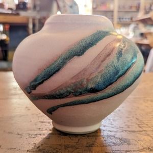 Charles Focht Tucson Southwest Dusty Pink and Blue Studio Art Pottery Gourd Vase Giveaway for Hewlett Packard Event Unsigned