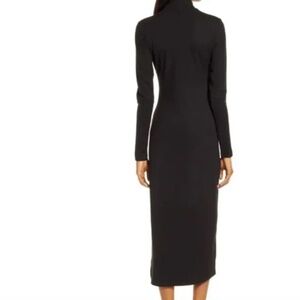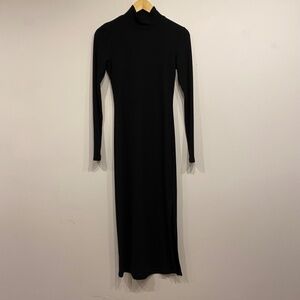 Black mock neck long sleeve midi dress. Stretchy and ribbed. Slit up one side. Perfect for a formal occasion. Easy to dress up or down. Chic and sophisticated. Size xs. In excellent condition.
