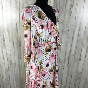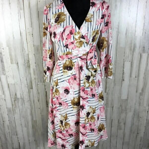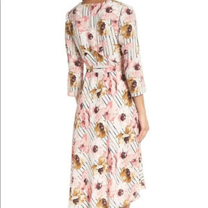 Charles Henry brand blush floral stripe wrap high low dress, size small S