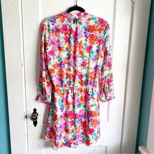 Nordstrom Charles Henry Bright Colorful Floral Button Top Elastic Waist Dress Size Small S. Notched V-neck neckline with buttons to waist. Beautiful, bright, floral print. Elastic at waistline for comfortable fit. Buttons at cuffs. Lined. Side seam pockets on skirt. Good, preowned condition.