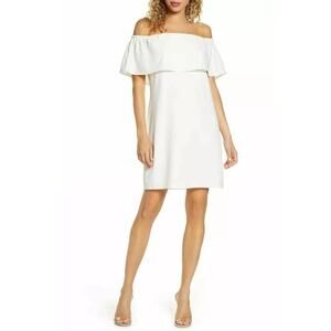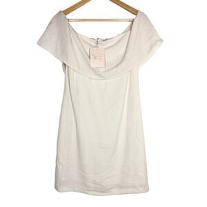 Charles Henry Dress Off The Shoulder Ruffle Overlay Mini Ivory White NWT XS