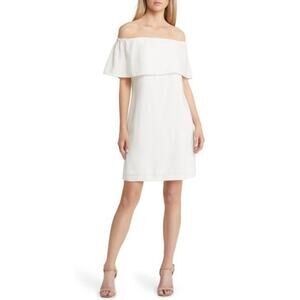 Charles Henry Ivory White Off the Shoulder Ruffle Mini Summer Dress Small NWT