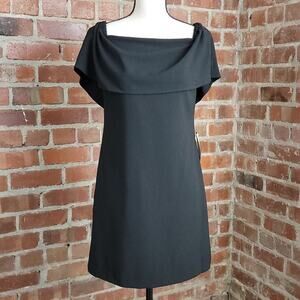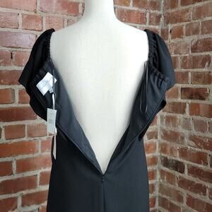 Black, mini A-line dress from Charles Henry. Designed to be worn off the shoulder but photographed here over the shoulders. Fully lined with a back hidden zipper and a hook/eye closure. New with tags attached and no visible flaws. In women's size Extra Small Petite.