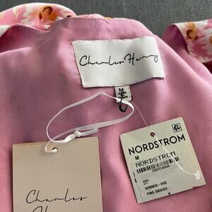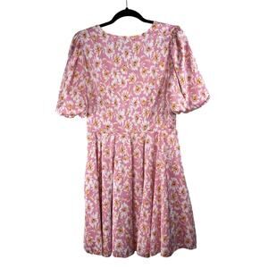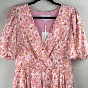 Charles Henry Pink Daisy Floral Surplus V-Neck Puff Sleeve Mini Dress Medium NWT
