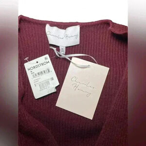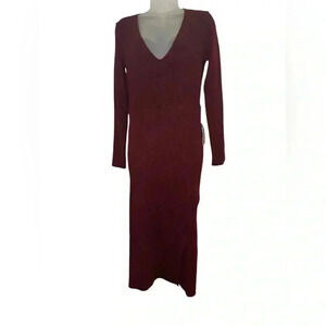 New with tags, never worn Charles Henry ribbed sweater dress in a rich burgundy color. This fitted midi dress features a flattering V-neckline, long sleeves, and a side slit for added movement and style. Made from a stretchy knit fabric, it hugs the body while offering comfort and warmth — perfect for fall, winter, or holiday events.