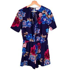 Charles Henry Short Sleeve Floral Print Romper in Size XS