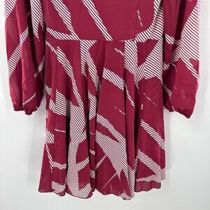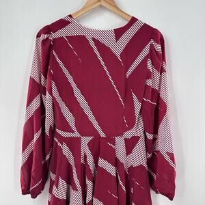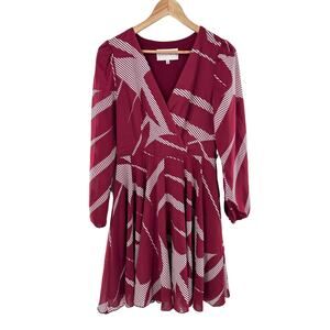 Charles Henry Size S Dress Printed Mini Long Sleeve Dress V-Neck Burgundy Geo