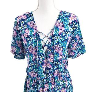 Charles Henry Womens Size Medium Lace-Up Front Summer Abstract Floral Dress