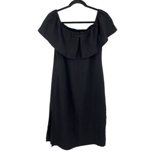 off the shoulder neck, lined except sleeves, fluttery silhouette, back zip, side slit