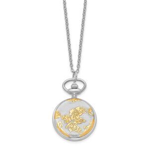 Charles Hubert Two-tone Floral Design Pendant Watch, 28 Inch