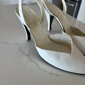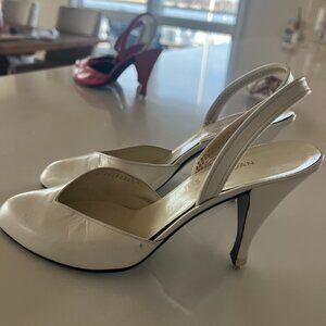 Bone color vintage sling back pumps. Needs a small heel from Shoe maker should cost about $5