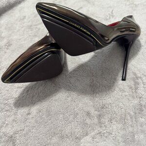 Charles Jordan Paris "Bridget" Classic Black Burgundy Iridescent Patent Pump