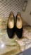 Purchased personally from the Henri Bendel store in NYC early 1990’s. They are in excellent condition, worn probably once or twice. No size marking anywhere but I’d say French size 39-39.5. Fits US 8.5/9. Made in France. No Box. Seamless black suede upper, high vamp. Pale gold leather lining and leather sole. Heel approximately 3.5”. Very thin platform , 1/4 inch. Non smoking home. Will provide generic dust bag.