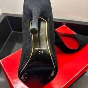Chic black suede heels by Charles Jourdan. Sleek design with a pointed toe. Perfect for elevating any outfit. Originally $295 in 1990’s.