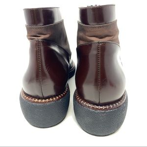 Charles Jourdan Burgundy Ankle Booties with Front Zip. Leather and Silk Fabric. Minor scuff, in last picture, the only sign of wear. Like new.