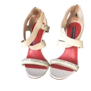 Charles Jourdan Snake Skin Print Sandal Heels Beautiful off white & red heels size 10 no visible damages