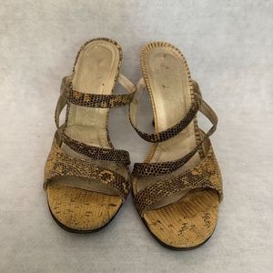 Charles Jourdan Snakeskin Sandals 6.5M Made in Italy 3.5" heel Gently worn