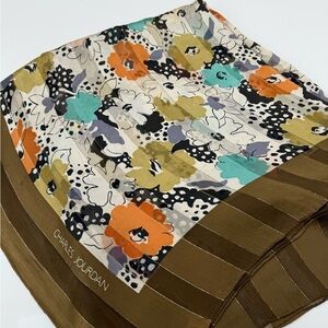 Charles Jourdan Vintage Silk Tan and Brown Scarf with Floral Motifs