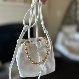 Elegant cream bag featuring a stylish gold chain. Perfect for any occasion.