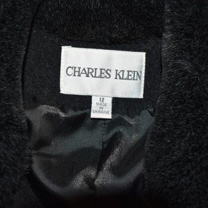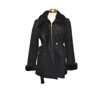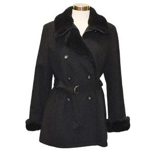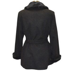Charles Klein Dark Grey Wool with Black Faux Fur Belted Pea Coat * Size 12