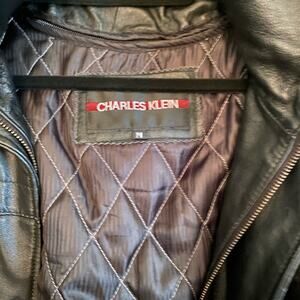 Charles Klein Hooded Leather Stadium Jacket