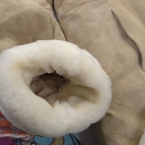 Charles Klein Luxurious Leather Tan and Cream Fleece Coat Size L
