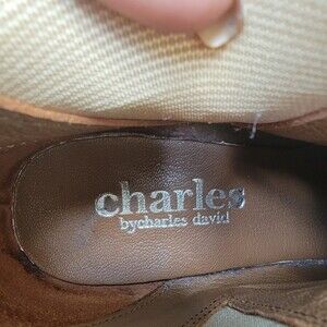 Charles David leopard print leather booties. These pull on ankle boots w/mid-height block heel and almond toe shape, making them the perfect addition to any outfit for a party, work, or business event. The calf hair outsole material adds a touch of luxury, while the synthetic lining material ensures maximum comfort.
