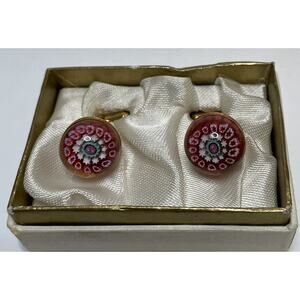 Charles Murat Millefiori Glass Cufflinks Red White Gold Plated x Saint-Louis Col