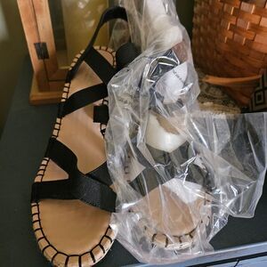 Charles NICK Black Espadrille Wedge Sandals Size 10 NWT Elegant Summer Style