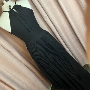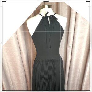 Charles Rafael For Zango XS Black Halter Pleated Maxi Dress Elegant Evening USA