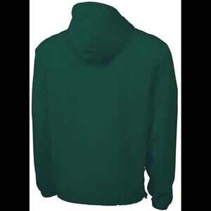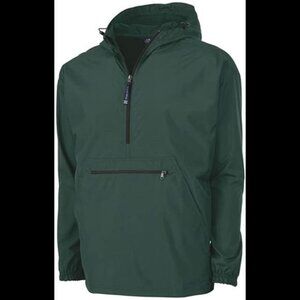 A great packable windbreaker pullover from Charles River Apparel. Lightweight and unlined, this pullover quickly and easily packs into its front pouch pocket and zippers closed. Great for your golf bag, a jacket to travel with or an emergency jacket for your car. Wind and water-resistant. Elasticized cuffs. Adjustable shock cord drawstring at the hem helps seal out wind and rain. Front pockets.
