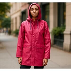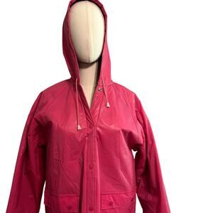 Charles River Womens VTG Hooded Rain Coat Jacket Lined SZ Med Pink Outdoor Boho
