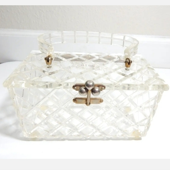 Item: Vintage 1950's Made in USA Clear Lucite 'Cut Glass' Diamond Pattern Top Handle Box Handbag Purse