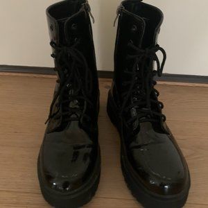 Gently Used. Lace Up. Side Zipper. Rugged Sole. Chunky heel. Black Patent. Size 10