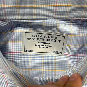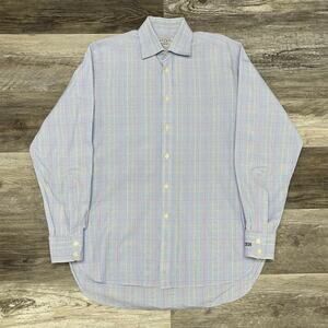 Charles Tyrwhitt Blue Yellow Plaid Mens 15.5 Long Sleeve Button Up Shirt Preppy