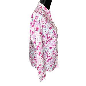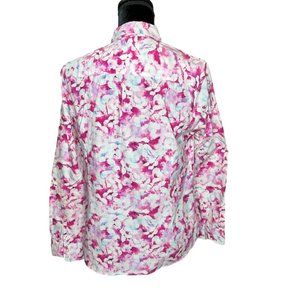 Charles Tyrwhitt Button Down Top Womens Size 8 Pink White Floral Long Sleeves