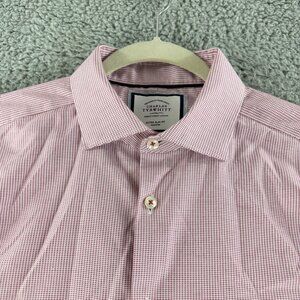 Charles Tyrwhitt Button-Up Shirt Mens Large Red Extra Slim Fit Non-Iron Cotton