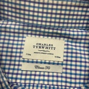 Charles Tyrwhitt Checkered Blue Purple Button Down Classic Shirt Men's Size 17 / XL