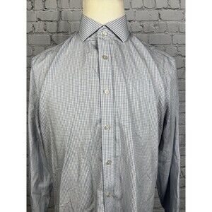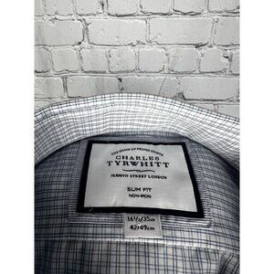 Charles Tyrwhitt Dress Shirt Mens 16 1/2-35 Slim Fit Blue,White Plaid Non-Iron