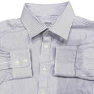 Charles Tyrwhitt Dress Shirt Mens 16 33/34 Slim Fit Blue Striped Long Sleeve