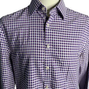 Charles Tyrwhitt Extra Slim Fit Button Up Shirt M Purple Check Non Iron Cotton