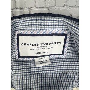 Charles Tyrwhitt Mens Dress Shirt 14 1/2-33 Slim Fit Blue,White Check Non-Iron
