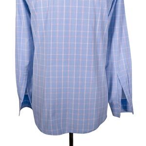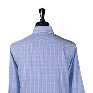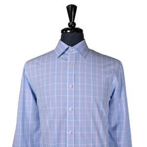 Charles Tyrwhitt Mens Dress Shirt Button Up Blue Pink Plaid Check Slim Fit 17 34